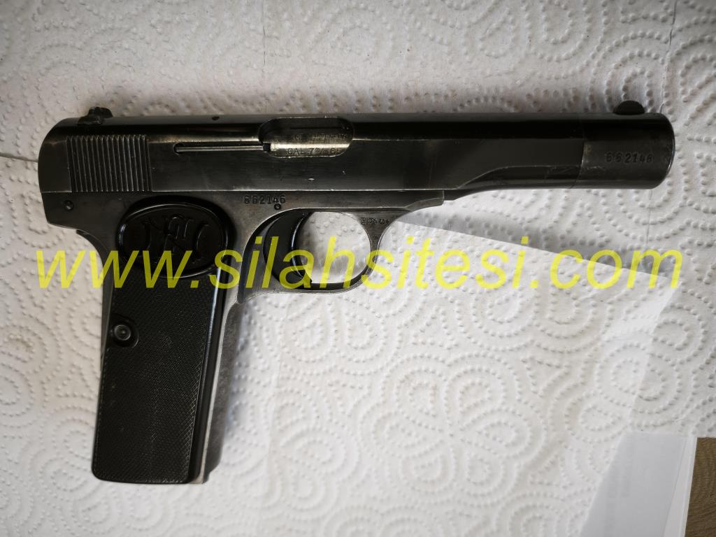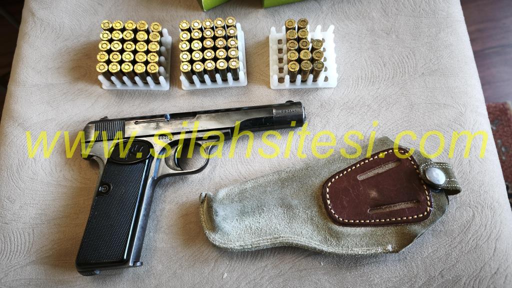 Belçika Browning 7.65 uzun yüzüklü. 1922 model. 63 adet mermisi ve kılıfı ile birlikte satılık.