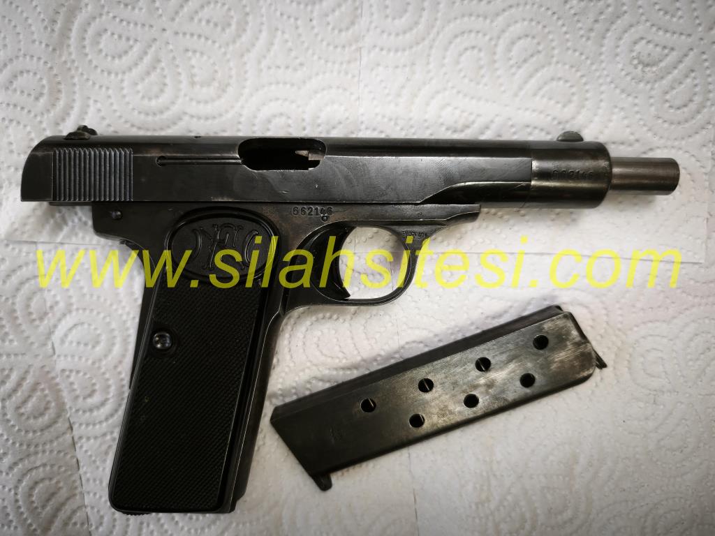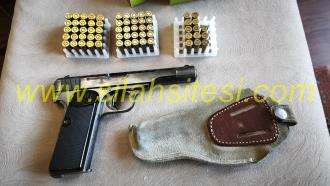 Belçika Browning 7.65 uzun yüzüklü. 1922 model. 63 adet mermisi ve kılıfı ile birlikte satılık.